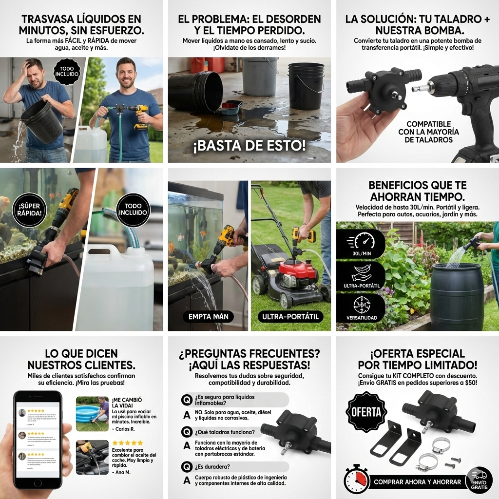 HydroForce Pro™, su diseño compacto, potente y resistente te permite bombear líquidos fácilmente usando tu taladro, sin esfuerzo y sin instalaciones complicadas. 🔧💧
